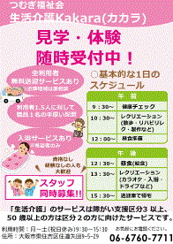 ご本人、家族の高齢化に伴い、入浴や食事提供が困難になっている方たちが、今の生活を継続できるように、入浴等の支援を行う。 |