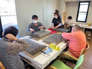利用者さんそれぞれ得手・不得手や能力の違いはありますが、皆が参加出来るように商品づくりを工夫したり、得意な人が他の人のフォローに入ってくれたりチームとして仕事を行っています。